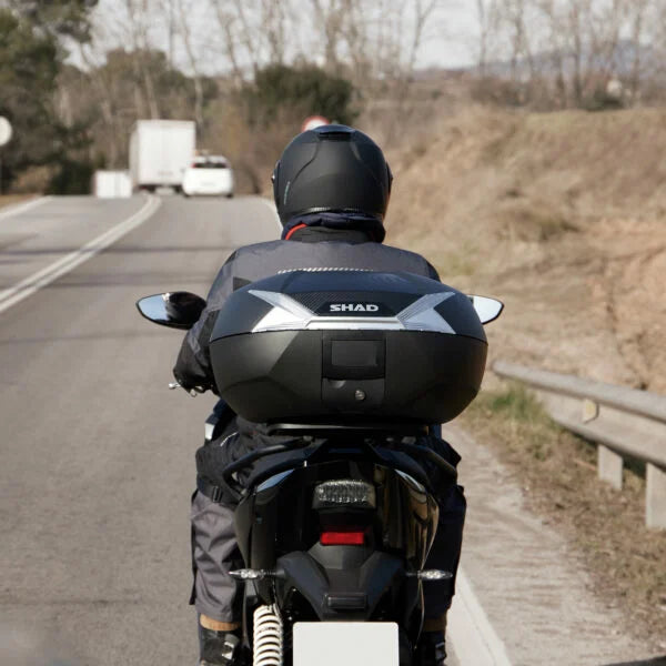 Baúl con capacidad para almacenar hasta 2 cascos integrales, ideal para quienes buscan espacio y funcionalidad.