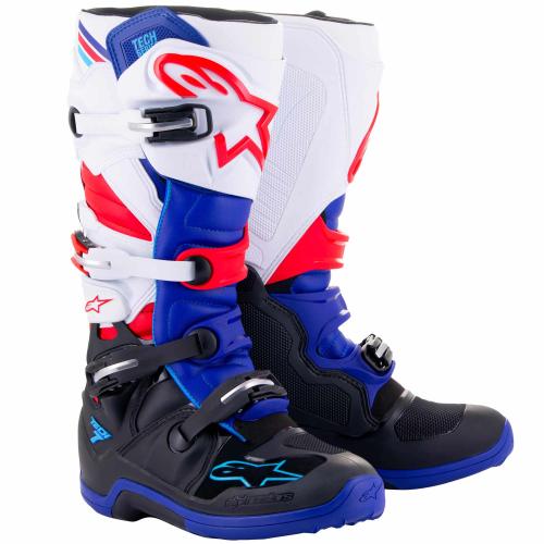 Botas Alpinestars Tech 7 en colores negro, azul, rojo y blanco.