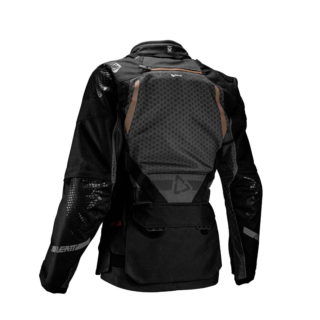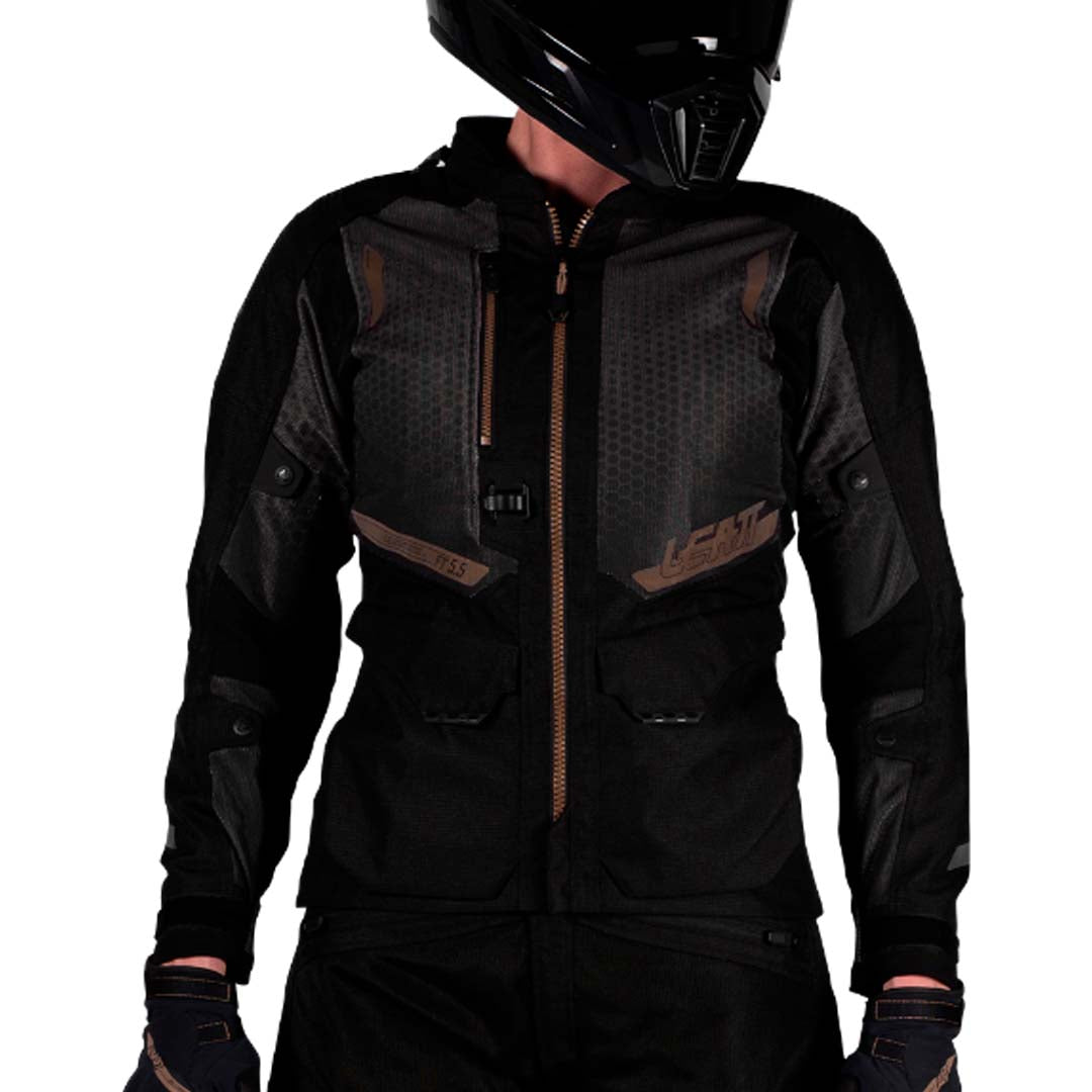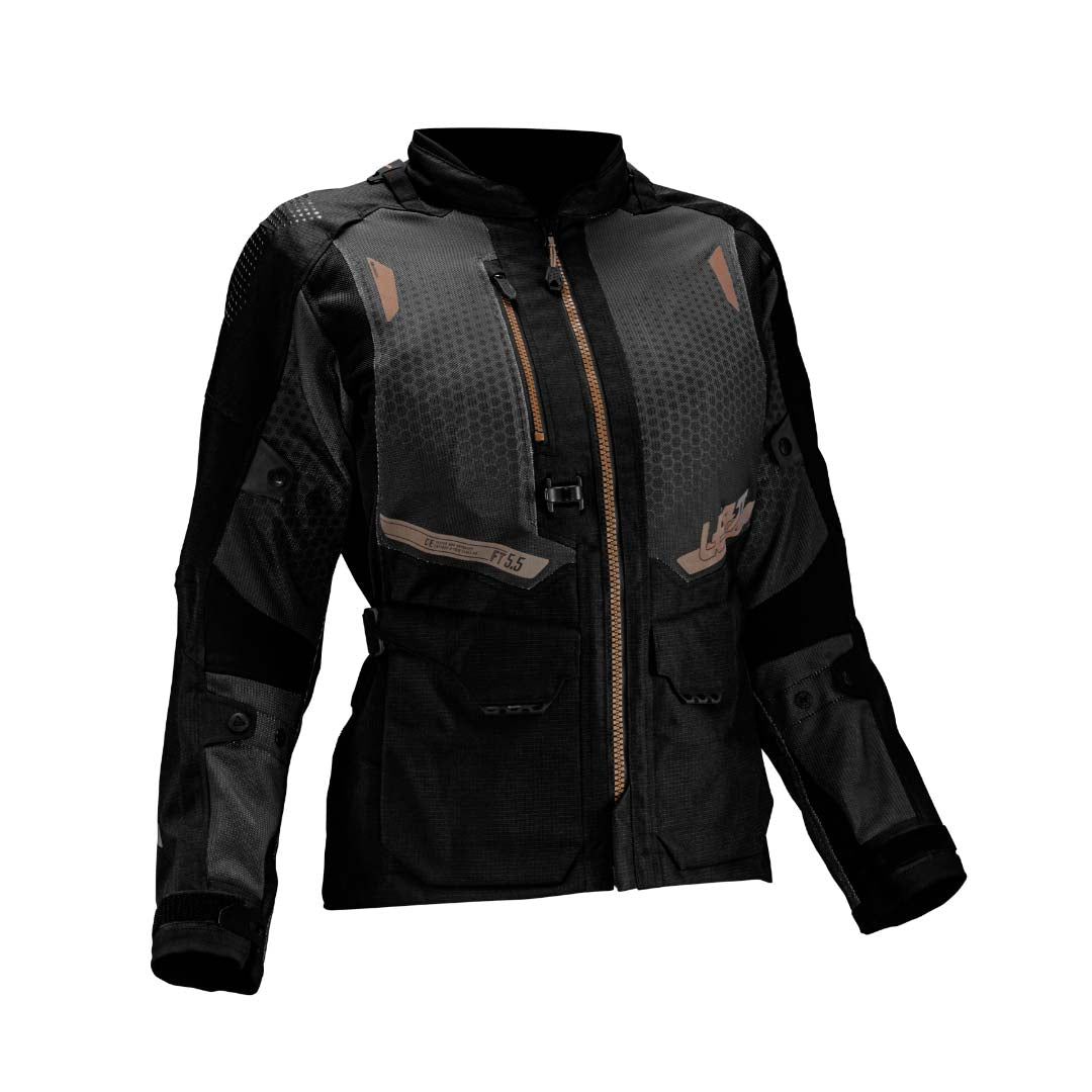 Chamarra Leatt ADV FlowTour 5.5 Mujer: chaqueta trail/adventure 4‑en‑1 diseñada para la mujer motera: combinación de shell ventilada, forro impermeable HydraDri® EVO, protecciones CE Nivel 2 y ventilación X‑Flow. Con múltiples bolsillos impermeables, bolsillo para hidratación de 1,5 L, cremallera de conexión a pantalones, detalles reflectantes y compatibilidad con collarín. Certificada EN Class AA