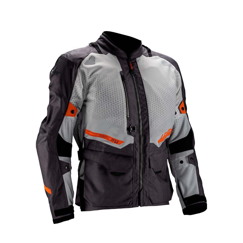 Chamarra Leatt Adv Flowtour 5.5 Iron diseñada para motociclismo de aventura y touring.