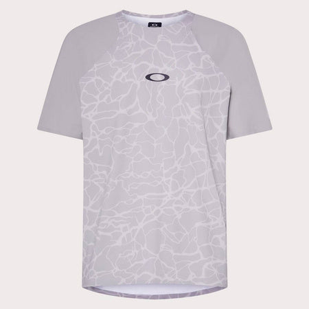 Jersey de manga corta con diseño camuflaje gris, estilo moderno y deportivo.
