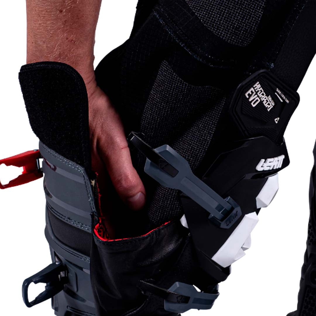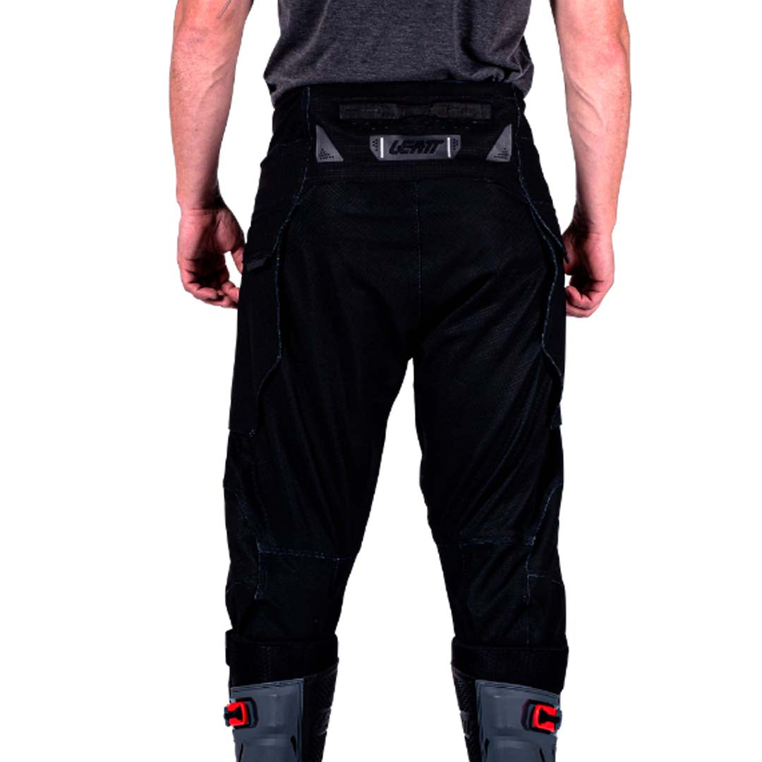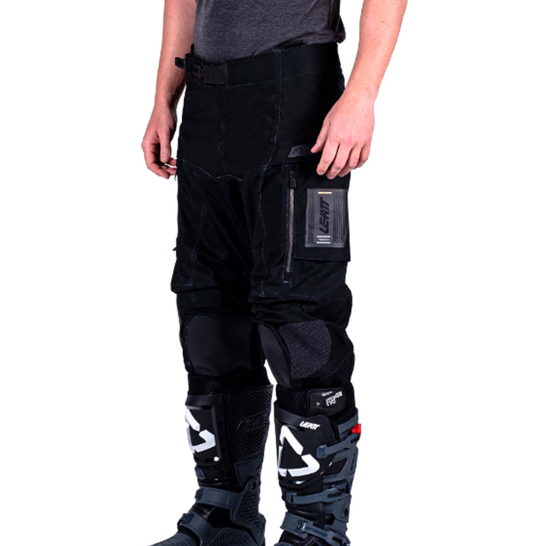 Pantalón Leatt ADV Rally 5.5: pantalón trail/adventure ligero y resistente, con tejido Rip‑stop 4‑direcciones y protecciones 3DF CE (rodillas Nivel 1, cadera Nivel 2), rodilleras ajustables y compatible con knee braces. Cuenta con forro de malla X‑Flow, grandes ventilaciones de muslo operables con una mano, prácticos bolsillos cargo más teléfono, refuerzos anti‑abrasión, cinturon micro‑ajustable, cremalleras YKK y agarre en cintura interior. Certificado EN Class A. Ideal para rutas mixtas y condiciones demandantes.